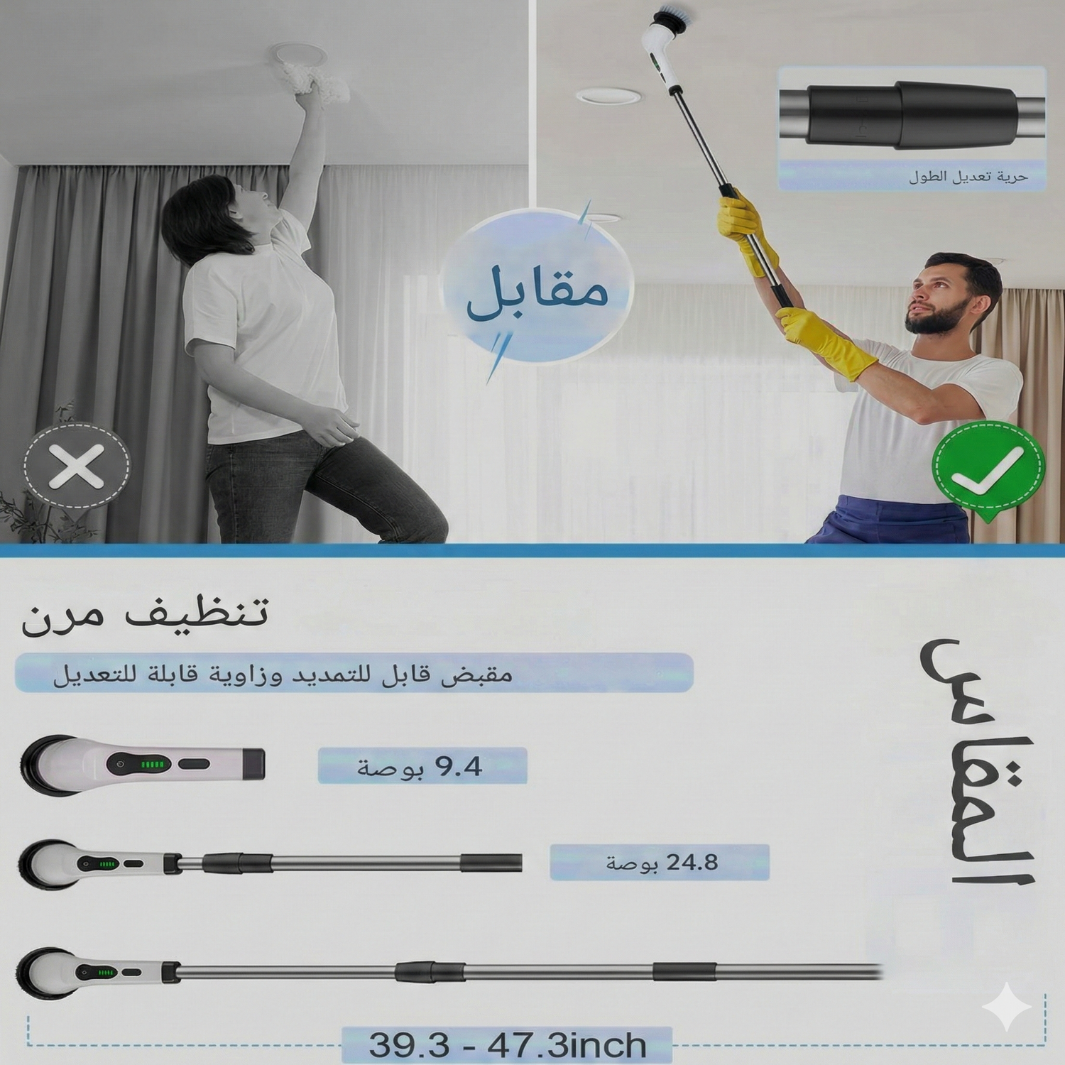 - ✅ حماية كاملة لظهرك ومفاصلك من التآكل: لن تضطر للانحناء أو الجلوس على ركبتيك للفرك بعد اليوم؛ المقبض الطويل يقوم بالعمل الشاق بدلاً عنك لتشعر بالراحة الجسدية التامة.